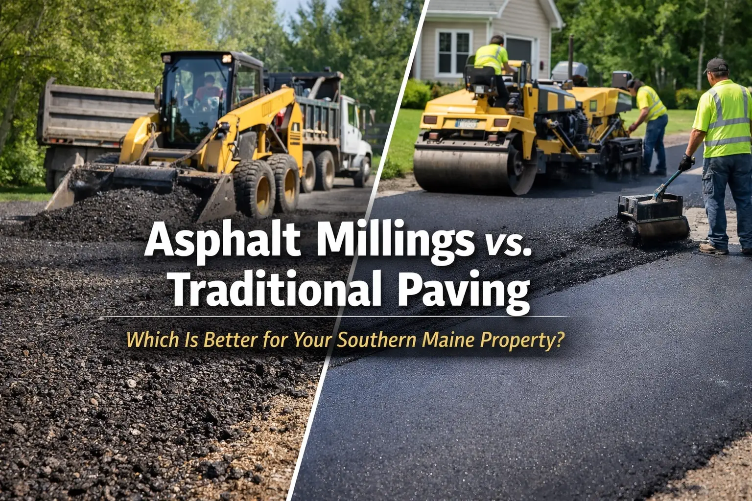 Southern Maine property owners face a critical choice between traditional hot-mix asphalt and recycled asphalt millings for their driveways and private roads. While traditional asphalt offers superior durability, aesthetics, and easier snow removal with a 20-25 year lifespan, millings provide a cost-effective, eco-friendly middle ground between gravel and full paving that works well for rural properties and long driveways. The best choice depends on your property's location, traffic needs, budget, and desired curb appeal.